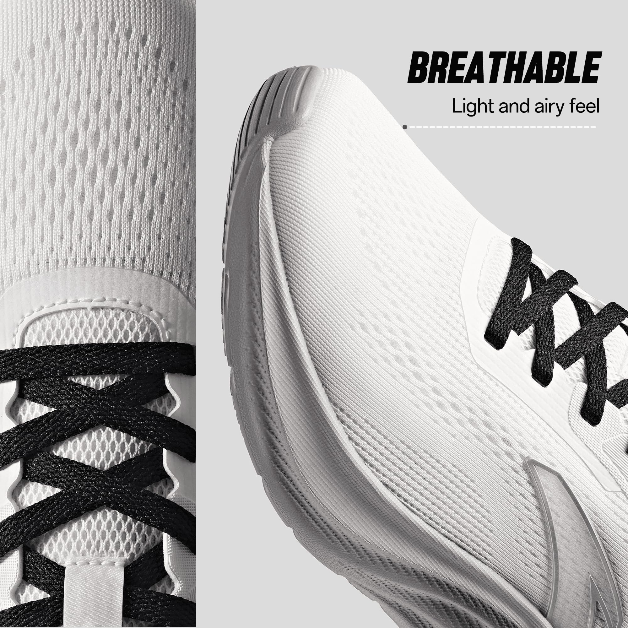- [Breathable & Lightweight] The running shoes upper is made of mesh material with stretchy woven upper, featuring flexible and breathable. Engineered to respond to your every movement, each shoe's weighs only 220-350 g, delivering ultra-lightweight responsiveness and exceptional energy return tailored to your unique athletic performance.